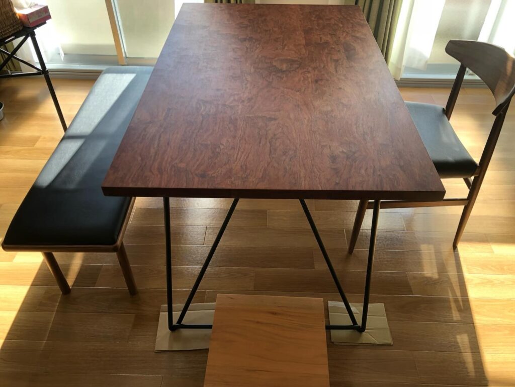 テーブルは珍しいブビンガ材🌳赤みの強い、深い色合いが魅力的な木材です!