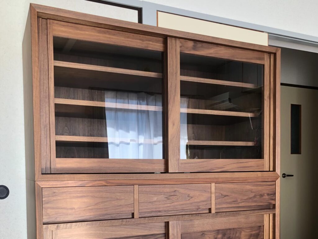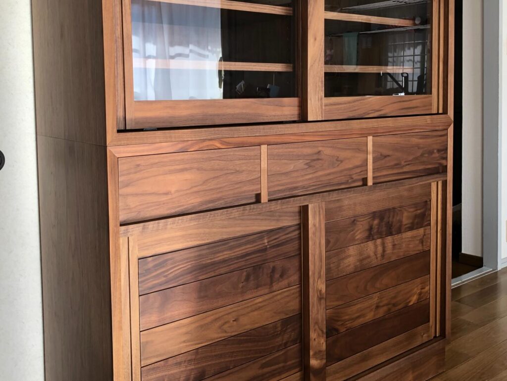 ウォールナットの食器棚は、H1500と、使いやすい高さが店頭でも人気です◎
