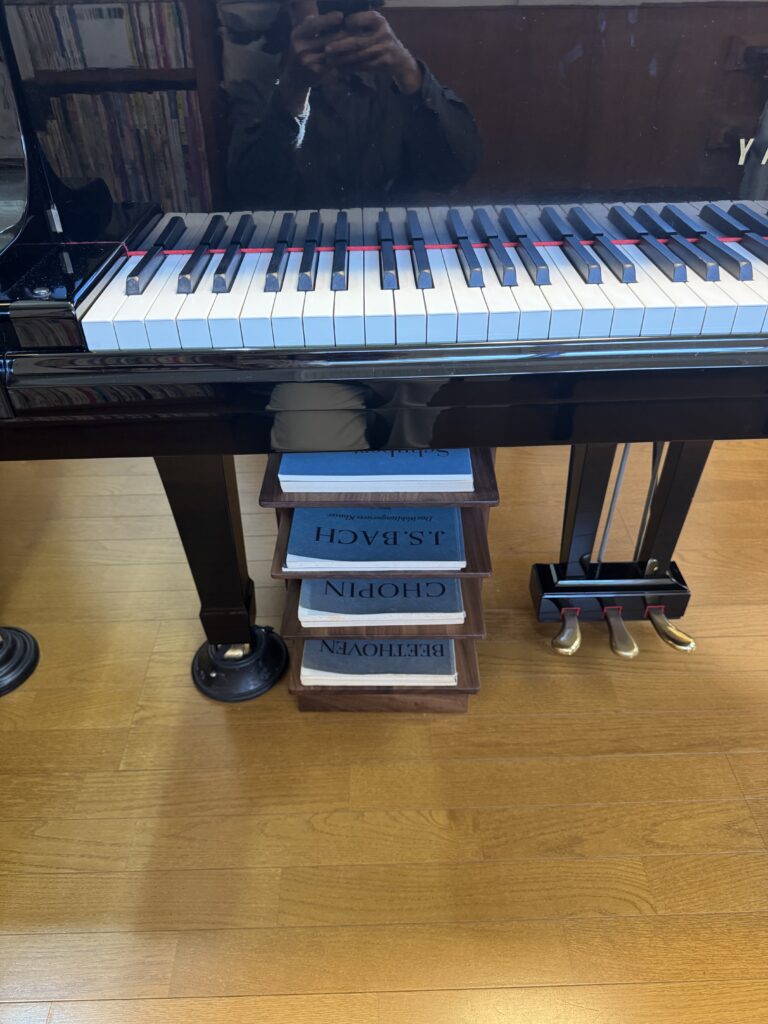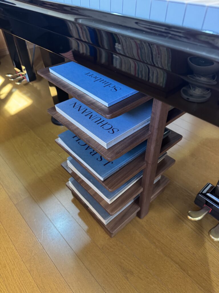 ピッタリと楽譜が乗り、かつ、ピアノの下にスッキリと収納できるサイズに制作をさせていただきました⭐️